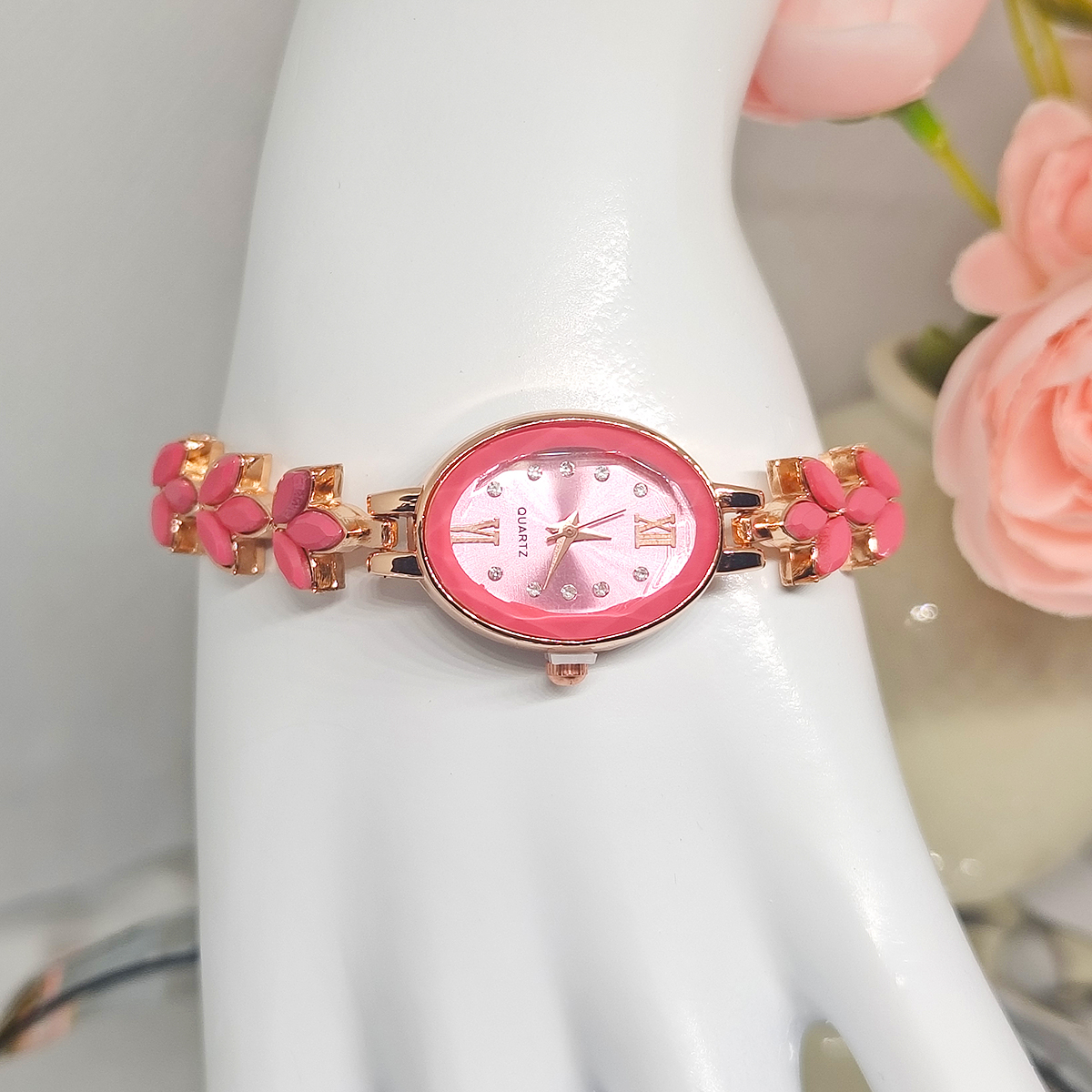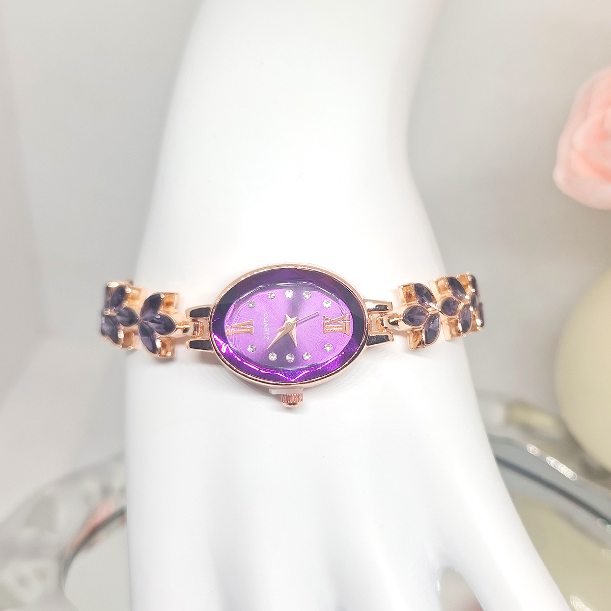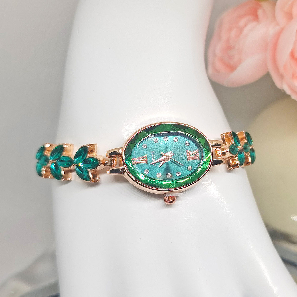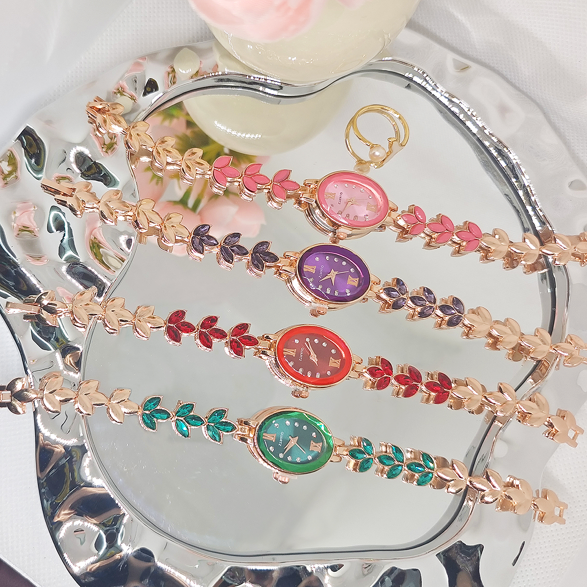 New Wheat Studded With Diamond Petals Leaves Women's Quartz Watch Bracelet Wholesale